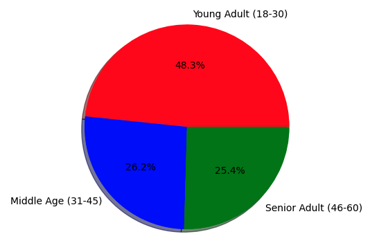 - Age Group Distribution: A pie chart illustrates the distribution of customers across age groups: The customer data includes three distinct age groups: Young Adult ranging from 18 to 30 years old, Middle Age covering those between 31 and 45 years old, and Senior Adults from 46 to 60 years old. The chart shows: